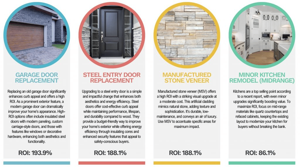 Whether you’re updating your home to sell or simply want to enjoy a more modern space, focusing on high-ROI projects is a smart strategy. From replacing your garage door to enhancing your home’s exterior with stone veneer, these upgrades can boost both your home’s value and appeal.