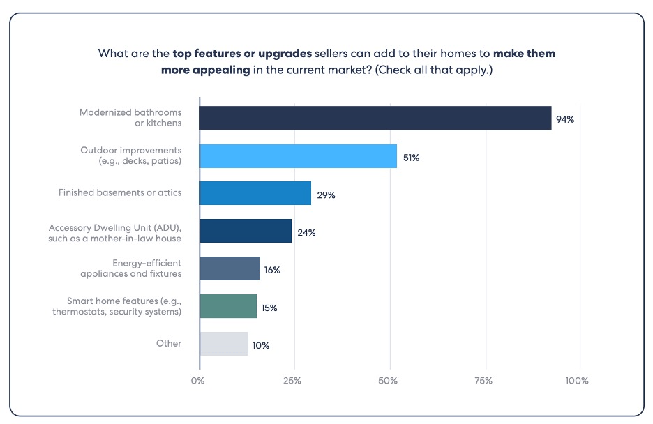 According to Homelight’s “Top Agent Insights End of Year 2024 Report, “88% of agents say that upgraded kitchens and appliances are one of the best-selling points for homes–a significant increase from the previous year.